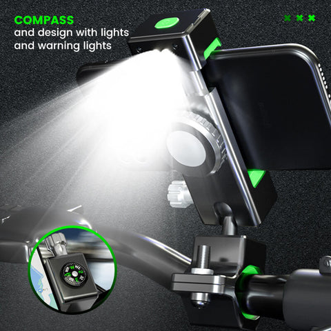 1. Mobile phone anti-drop design, fast one-key lock.2. Anti-theft screw design to prevent the bracket from being stolen.3. Compass design, interesting and practical.4. The 360° ball head rotates, making it more convenient to take pictures while riding!