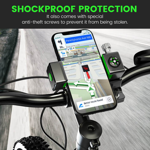The bike phone holder comes with Soft silicone protect the phone, which effectively prevent your phone from scratches. fast lock, this design can catch your phone firmly. And the phone doesn’t shake and wobble when riding. It also comes with special anti-theft screws to prevent it from being stolen.